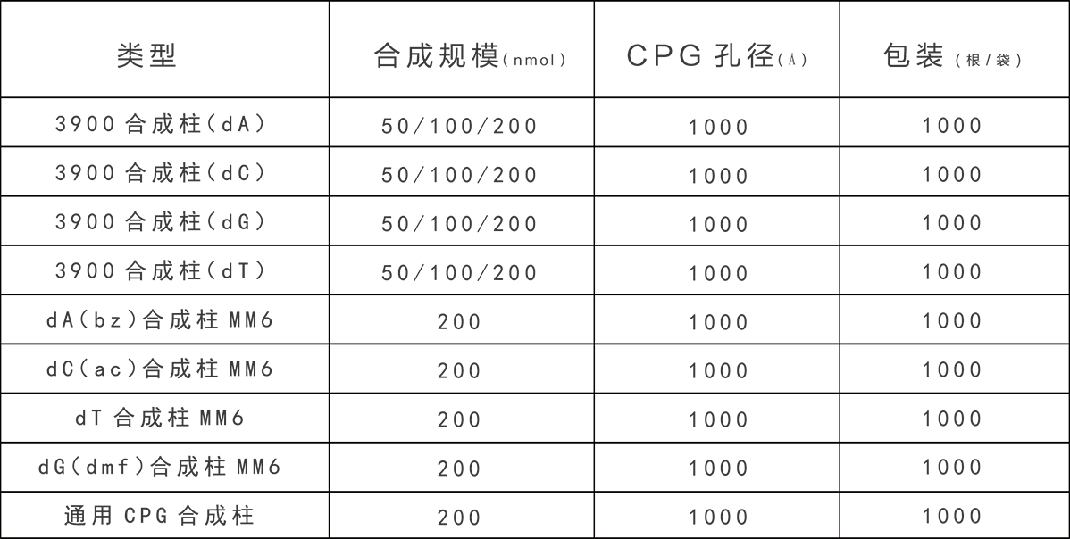 第一代合成柱在柱管內(nèi)填充固相載體CPG,并由上下篩板固定,合成通量大、容易裝配,適合短鏈引物合成。